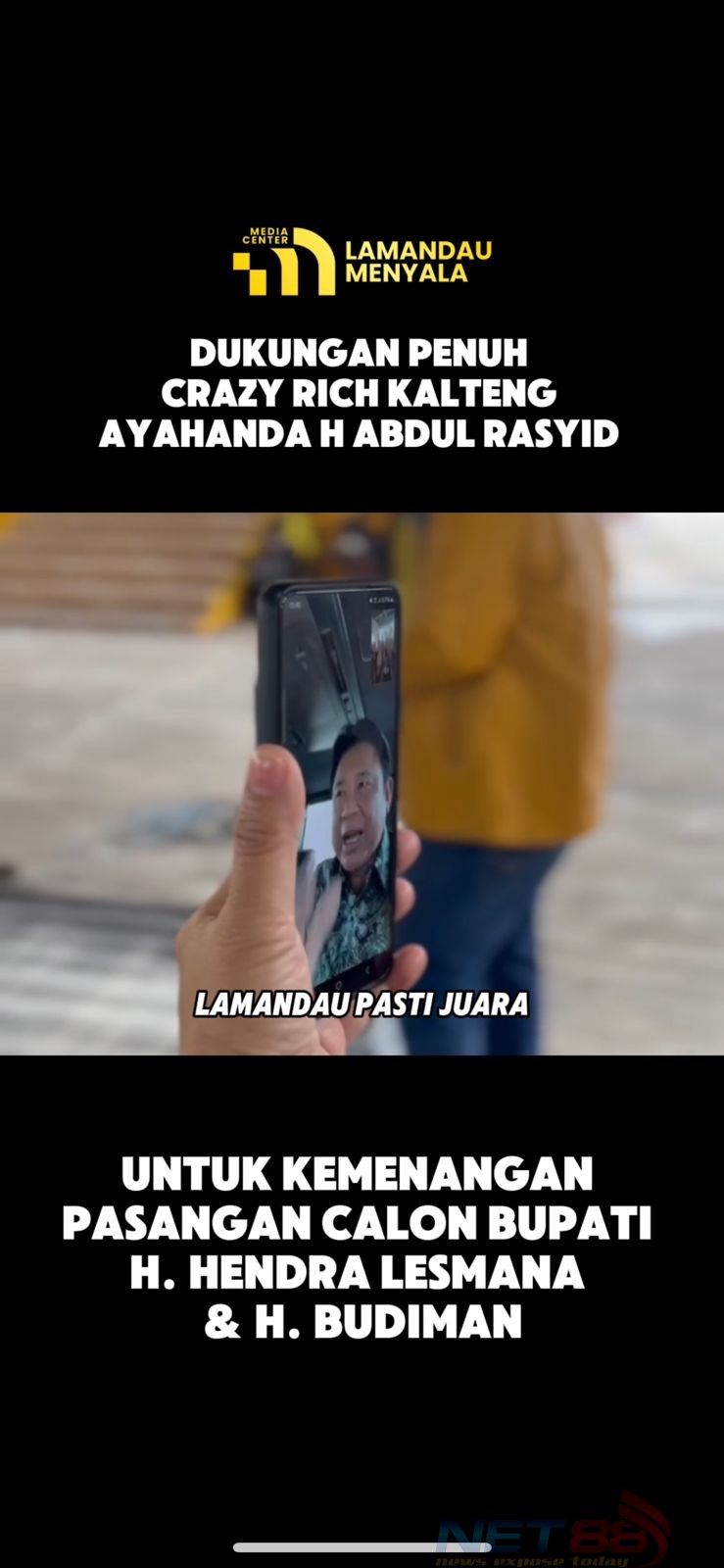 Lamandau, 29 Agustus 2024 — H. Abdul Rasyid, pengusaha sukses owner Citra Borneo Indah (CBI) Group menyatakan dukungan penuh kepada pasangan H. Hendra Lesmana dan H. Budiman dalam Pemilihan Kepala Daerah (Pilkada) Lamandau 2024. Diketahui melalui