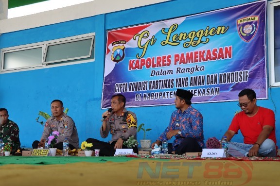Salah satunya adalah menggelar giat” Gi Lenggien “Kapolres Pamekasan dalam rangka Cipta Kondisi Kamtibmas Yang Aman dan Kondusif di Kabupaten Pamekasan bertempat di Balai Desa Branta Pesisir Kecamatan Tlanakan, Kabupaten Pamekasan, Jum’at (7/10/2022).