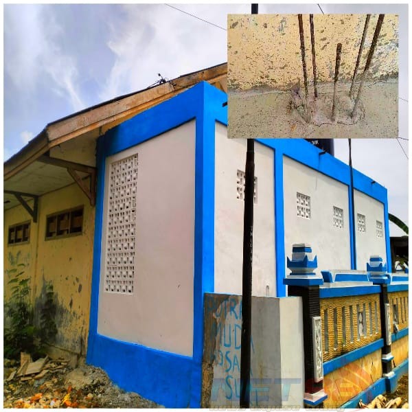 Masalah tak berhenti pada transparansi. Indikasi penyimpangan spesifikasi teknis mulai mencuat dari hasil pengamatan dan dokumentasi lapangan. Besi tulangan beton yang digunakan tampak tidak seragam dan diduga mayoritas hanya berdiameter sekitar 10 milimeter. Angka ini berada di bawah ukuran yang lazim digunakan untuk kolom bangunan, yang umumnya 12 milimeter sebagaimana kerap tercantum dalam Rencana Anggaran Biaya (RAB).
