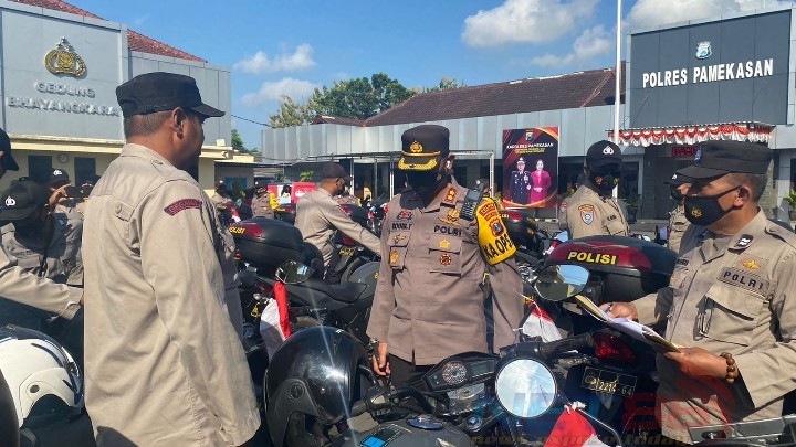 Du kesempatan tersebut Kapolres Pamekasan bersama Para PJU secara langsung mengecek satu persatu kendaraan dinas yang melekat pada masing-masing Bhabinkamtibmas.