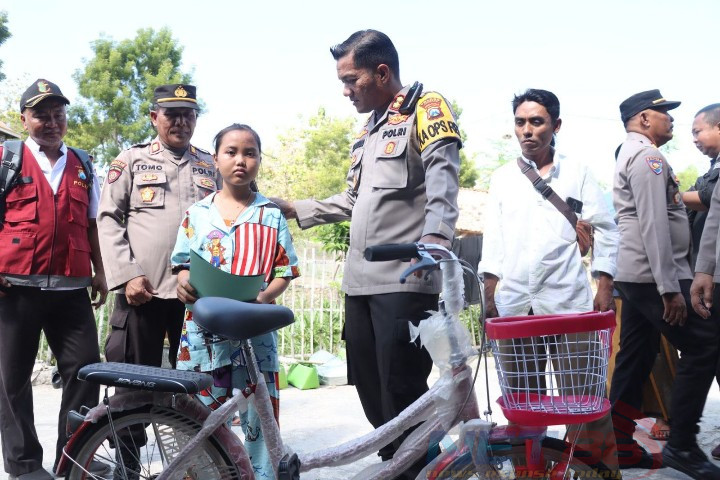 Di lokasi, Kapolres Sampang AKBP Siswantoro S.IK, MH juga membawa 1 unit sepeda mini sesuai permintaan Siti Maimunah yang sangat menginginkan sepeda mini untuk bermain bersama teman dilingkungan tempat tinggalnya.