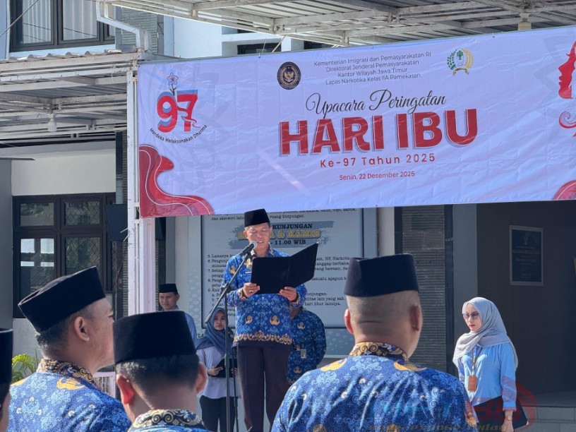 Lapas Narkotika Kelas IIA Pamekasan melaksanakan Upacara Peringatan Hari Ibu ke-97 Tahun 2025 dengan tema “Perempuan Berdaya dan Berkarya, Menuju Indonesia Emas 2045”. Upacara ini dipimpin langsung oleh Kepala Lapas, Bapak Kusnan, dan diikuti oleh seluruh pegawai dengan penuh semangat dan rasa hormat.