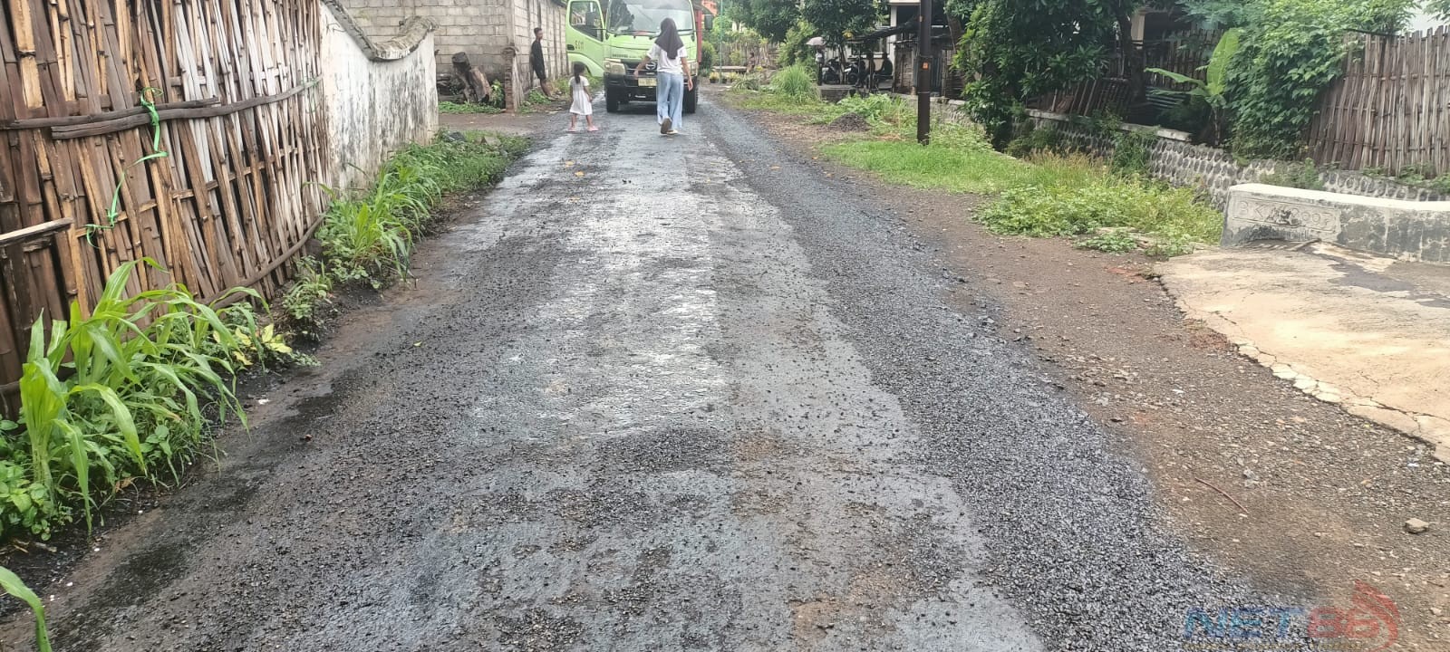 Foto-foto yang diambil warga menunjukkan lapisan aspal tampak tidak merata, bercampur air, dan berpotensi tidak menyatu sempurna dengan permukaan dasar.