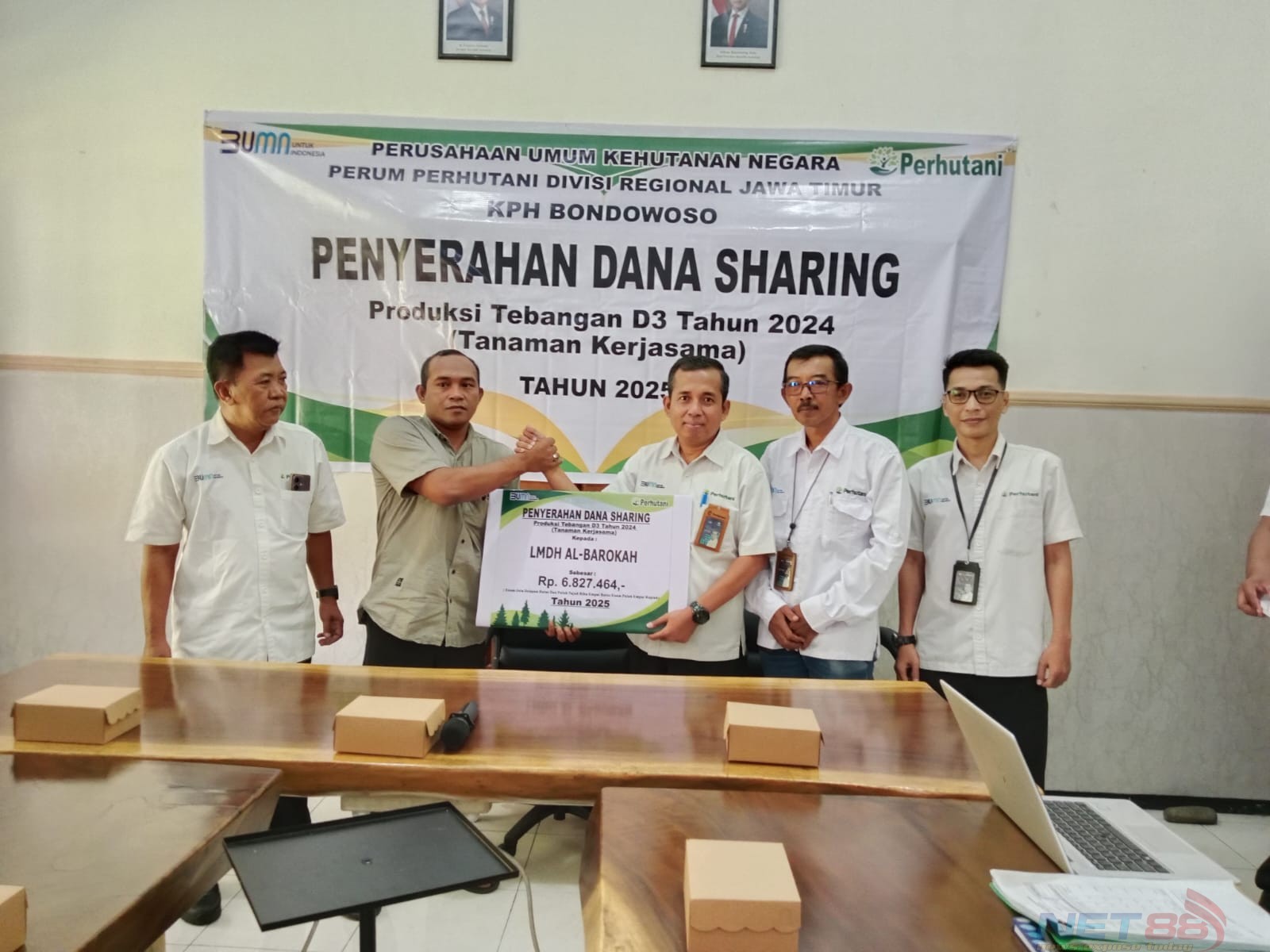 Penyerahan sharing hasil tebangan tersebut dilaksanakan secara langsung oleh Administratur Perhutani KPH Bondowoso, didampingi jajaran manajemen, bertempat di Aula Sonokeling Kantor Perhutani KPH Bondowoso, sebesar Rp. 212.641.207,- Kegiatan ini merupakan implementasi konkret dari skema kemitraan kehutanan yang berorientasi pada pemberdayaan masyarakat desa hutan melalui pemanfaatan lahan secara produktif, legal, dan bertanggung jawab.