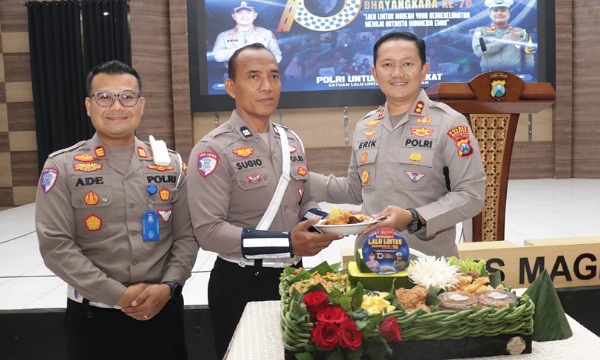 Dalam sambutannya, AKBP Raden Erik mengapresiasi dedikasi Korps Lalu Lintas yang telah mengabdi selama tujuh dekade dalam menjaga keamanan dan ketertiban lalu lintas.