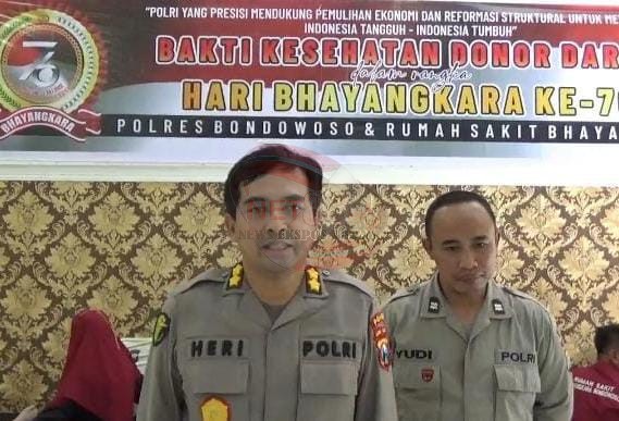 Karumkit RS Bhayangkara Bondowoso, AKBP dr. Heri Budiono,Sp.U mengatakan, Kegiatan donor darah ini merupakan dalam rangka HUT Bhayangkara ke 76,kita juga mengundang juga dari Kodim,Yonif Raider,Kompi Brimob,Jajaran Pemkab dan tim medis.