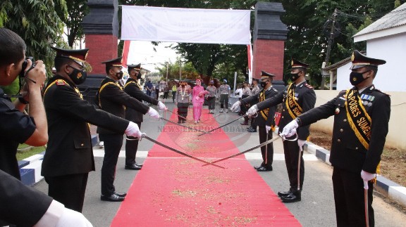 Kapolres Sumenep yang baru di sambut oleh Forum Komunikasi Pimpinan Daerah (Forkopimda) Sumenep, para PJU dan Polsek Jajaran serta OPD Sumenep beserta undangan.