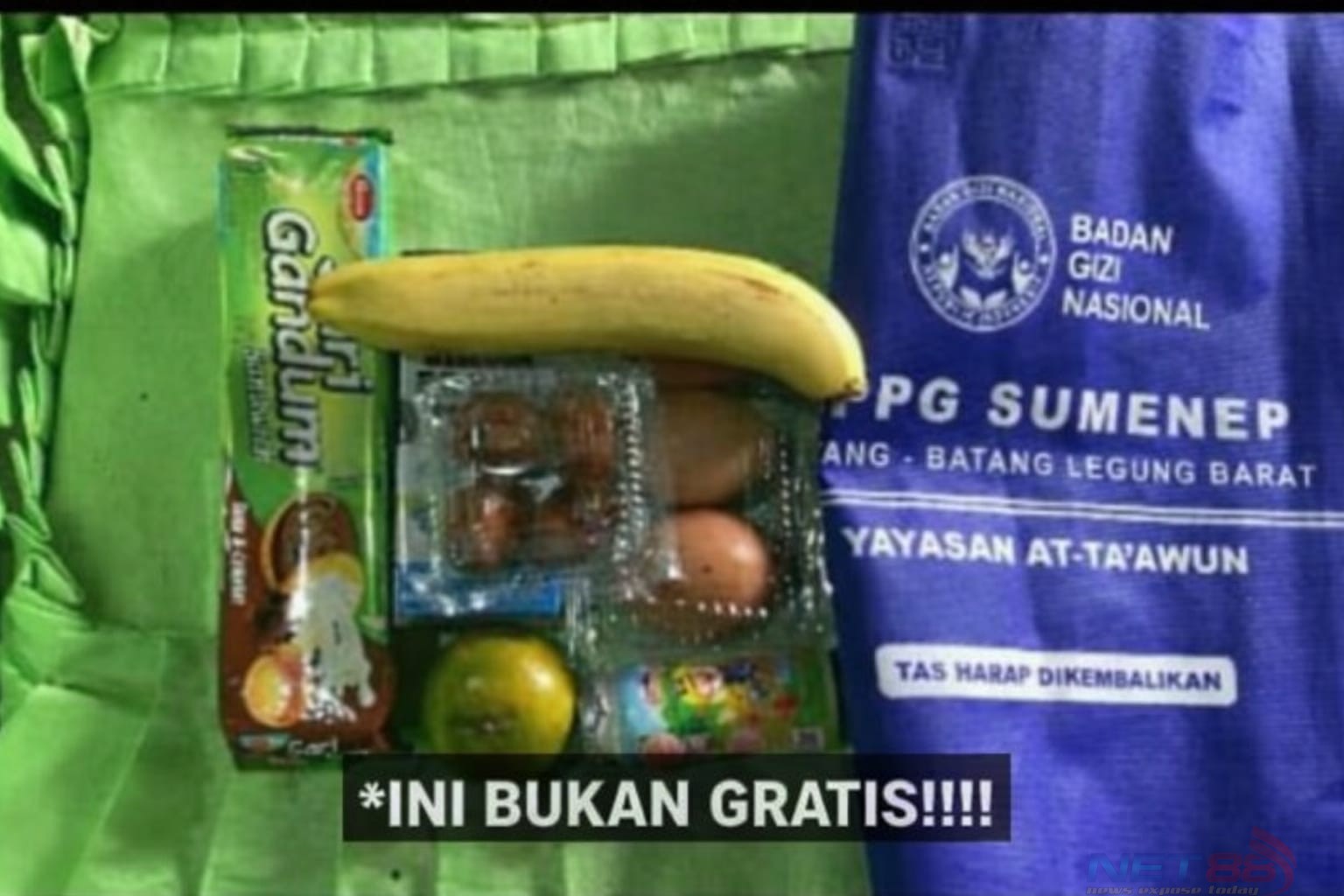 Paket yang diterima siswa untuk jatah tiga hari tersebut berisi sari gandum, jeruk, pisang, kurma empat butir, telur dua butir, serta satu botol susu kecil. Berdasarkan estimasi harga pasar yang beredar di kalangan wali murid, total nilai paket tersebut diperkirakan sekitar Rp16.200 untuk tiga hari atau sekitar Rp5.400 per hari.