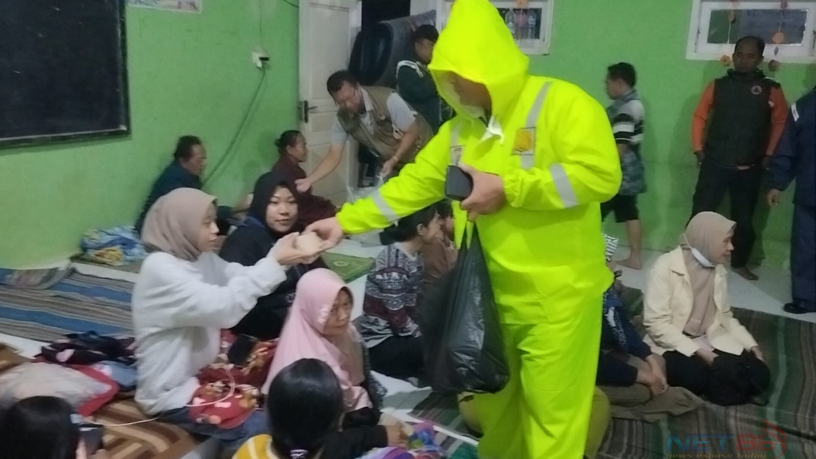 Untuk memastikan keselamatan warga, aparat bersama stakeholder terkait mengevakuasi mereka ke SDN Cowek 2 sebagai tempat pengungsian sementara.