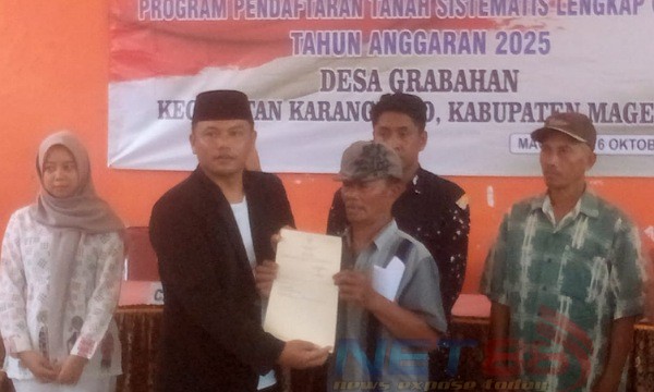Magetan – Net88.co — Setelah menanti cukup lama, rasa lega dan bahagia tampak terpancar dari wajah warga Desa Grabahan, Kecamatan Karangrejo, Kamis (16/10/2025). Aula kantor desa yang biasanya sepi kini penuh sesak oleh warga yang datang untuk menerima sertifikat tanah mereka—hasil dari program Pendaftaran Tanah Sistematis Lengkap (PTSL) yang digagas pemerintah.